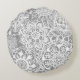 A lovely round throw pillow featuring a soft grey and white floral mandala pattern design. Perfect to add a touch of beauty to your home decor.