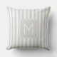 Soft Grey and White Ticking Stripe Monogram Cushion