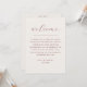 A clean and modern wedding timeline card designed with a soft ivory background and deep burgundy typography. The layout combines a flowing script headline with structured text, creating a balanced look that feels both elegant and easy to read. The front side features a clear wedding weekend schedule, including rehearsal dinner, ceremony, reception, and post wedding brunch. The organised layout helps guests quickly follow the timeline without confusion. The reverse side includes a warm welcome message, adding a personal touch. This card works especially well for modern weddings, destination celebrations, and full wedding weekend events. The soft ivory background keeps the design clean and versatile, making it a natural fit for a wide range of settings, from classic venues to understated, elegant celebrations. Available as both a printed card and a digital download.
