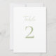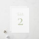 Chic and elegant. This template features the a contemorary set of fonts in a soft mint green, against a white background. The design is repeated at the back for guests to view from all table angles.