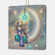 Soft Night Little Girl and Kittens on Moon Ceramic Ornament