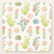 Soft Pastel Cactus & Succulent Pattern Square Paper Coaster