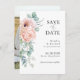 Share the news of your wedding plans with this beautifully elegant watercolor save the date card. The design features soft pastel roses, poppies and eucalyptus leaves in pastel pink, peach, and beige with trailing greenery. A lovely type face pairing conveys your details in style. This trendy colour combination is a popular choice with modern appeal. The back of this card has a photo template for including your chosen vertical photo. Replace the sample photo shown in the design template. Personalise the easy-to-use text template with your details.