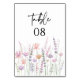Guide your guests with ease using these watercolor wildflower wedding table number cards. Featuring a delicate hand-painted spray of shades of blush, lavender, sage and peach blooms surrounding bold modern script, these cards bring a rustic yet elegant touch to your reception tables. Perfect for boho, garden, or spring and summer weddings, the design coordinates beautifully with the matching wildflower wedding invitation suite, including place cards, menus, and more. Printed double-sided for visibility, these table numbers are both practical and decorative.