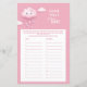 Get ready to elevate your girl baby shower party with a soft pastel pink cloud nine "Name That Tune" game design! Picture the dreamy atmosphere of soft pastel colours enveloping your guests as they tap into their musical memories. With a touch of whimsy and a sprinkle of charm, this game is sure to bring laughter and joy to the celebration. Let the gentle hues of pink transport you to a realm of sweet melodies and fun competition, making your baby shower an unforgettable experience for everyone involved. Let the music fill the air and create an enchanting ambiance that will leave your guests on cloud nine.