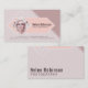 A soft and feminine design for a business card with your photo. On the front, the design features your photograph in a diamond shape, surrounded by white graphic diamond shapes in soft peach, lilac and pink tones. On the back, the design is repeated in the same colors with your name and occupation in larger text.
