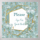 Pale soft pastel shades of sage green silk drapes with white flamingos and flowers, gold flames and bright sparkles for wedding stationary theme