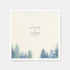This elegant wedding napkin design features a tranquil watercolor illustration of a pine forest in soft blue and green hues, evoking a peaceful, nature-inspired atmosphere. The subtle gradient of watercolor adds a dreamy, minimalist touch to the overall aesthetic, making it a perfect addition to an outdoor, forest, or mountain-themed wedding or any party celebration. The simplicity of the design ensures it blends seamlessly with various wedding styles, while the nature-inspired elements create a calming, organic vibe. Ideal for complementing rustic or botanical decor, this napkin adds a refined yet understated detail to any celebration.
