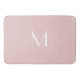 Bath mat with a soft pink solid colour background and white font. Simple and trendy design by Alma Wad. Personalise it with your monogram now.
