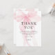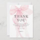 Soft Pink Bow Text Overlay Baby Shower Thank You. Available digitally and printed. Easily personalise the text to your details. A coquette pink bow is tinted in the background with the words overlaid on top.