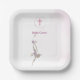 Soft Pink Cross & Floral Girl Baptism paper plat Paper Plate