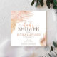 This is a baby shower invitation with a soft pink floral theme. The design includes a beautiful elegant soft light pink flower arrangement with pink flowers, feathers, and leaves.