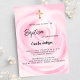 A close-up of a watercolored soft pink rose, flower. Personalise and add the name of the mum-to-be and party details.