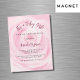 A close-up of a watercolored soft pink rose, flower. Personalise and add the name of the mum-to-be and party details.