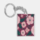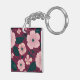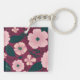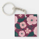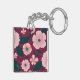 Soft Pink Floral on Deep Maroon Background Key Ring