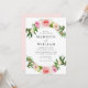 Elegant, floral wedding invitations featuring a spray of watercolor pink and blush flowers with vivid green leaves at the top and bottom of the invite. Personalise the wedding invites by adding your names, the date & time, venue name, etc. The invite reverses to a blush pink background.
