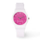 Pretty Pink Watch ready for you to personalise with your text. ✔NOTE: ONLY CHANGE THE TEMPLATE AREAS NEEDED! 😀 If needed, you can remove the text and start fresh adding whatever text and font you like. 📌If you need further customisation, please click the "Click to Customise further" or "Customise or Edit Design" button and use our design tool to resize, rotate, change text colour, add text and so much more. ⭐This Product is 100% Customisable. Graphics and / or text can be added, deleted, moved, resized, changed around, rotated, etc... ⭐99% of my designs in my store are done in layers. This makes it easy for you to resize and move the graphics and text around so that it will fit each product perfectly. 📌 (Please be sure to resize or move graphics if needed before ordering) You can also "TRANSFER DESIGN" on other Zazzle products and adjust the design to fit most of Zazzle items. (button is down on the right side of the page) This design is made with high resolution vector and/or digital graphics for a professional print. 📌NOTE: (THIS IS A PRINT. All #Zazzlemade product designs are "prints" unless otherwise stated under "About This Product" on the left side of this page) The design will be printed "EXACTLY" like you see it on the screen and on the product...so please make sure when you do your changes on the resizing of any of the graphics or text that it fits in the areas correctly and that your spelling and wording is how you like it to be in size, colour and font. If you have any questions about the "DESIGN ONLY" or need help please contact me at ✉ siggyscott@comcast.net or visit my store link: https://www.zazzle.com/store/designsbydonnasiggy (Copy and Paste) I'll be happy to help. 📌 ALL OTHER QUESTIONS (shipping, refund, the printing, the product, etc...) please contact Zazzle or the Maker ⭐DIRECTLY⭐. Thank you for the support and stopping by my store - DesignsbyDonnaSiggy. (This is an 🥇ORIGINAL DESIGN done by Donna Siegrist)⭐⭐⭐ ZAZZLE promises 100% satisfaction. If you don't absolutely love it, Zazzle will take it back! ⭐⭐⭐ 1-888-8ZAZZLE (1-888-892-9953) Phone hours: Mon - Fri: 9AM - 5PM PT (12PM - 8PM ET)