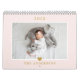 Custom-designed photo calendar featuring gold heart design with personalized photos.