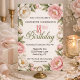 Soft Pink Magnolia and Peony 18th Birthday Invitation