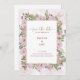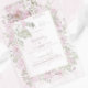 A soft pink themed wedding Save the Date card with a frame of pink peonies.