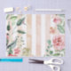 This elegant floral decoupage paper features a soft, thick vertical stripe pattern in blush pink tones with pink coloured roses and beautiful leafy botanical accents. A lovely design for your decoupage project or tissue paper for a wedding gift, anniversary gift, birthday gift, or a special occasion.