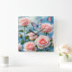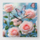 Soft Pink Rose Flower Blue Butterfly Square Wall Clock