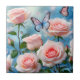 Soft Pink Rose Flower Blue Butterfly Tile