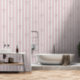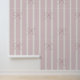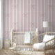 Soft pink and linen coloured vertical striped wallpaper with dusty pink hand drawn bows.
