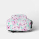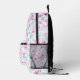 This customisable backpack is adorned with a delicate and artistic floral print. The blossoming flowers, painted in soft shades of pink, are complemented by the gentle touch of green leaves, creating an elegant and refreshing aesthetic. The print is distributed evenly across the backpack, offering a harmonious blend of colour and design that is both eye-catching and sophisticated. There’s a small pocket on the front with the name “Samantha” written on it, indicating the backpack’s customisation options for names or initials. This personal touch makes the backpack unique and adds a sense of ownership.