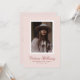 Modern one photo graduation announcement featuring a soft pink background, white postage stamp–style frame, and elegant red script typography. The gentle color palette creates a warm, refined look that feels modern, feminine, and timeless.