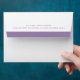 Invitation and announcement mailing envelopes with printed return address and a muted purple or soft orchid purple stripe on the back flap and inside.