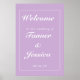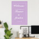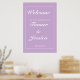Pretty, modern, minimalist and trendy wedding poster sign features a soft pastel purple background (Pantone's 2022 colour pick "Orchid Bloom") with white customisable text blocks in modern fonts