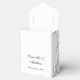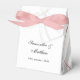 An elegant, modern wedding favour box in white, with a pattern of soft rose pink swirls and large grey flourishes on the back and front flap. This stylish gift box was especially made to match an existing wedding suite, which you can find here: https://www.zazzle.com/collections/soft_rose_and_grey_flourishes-119532891094763537