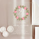 Rustic chic botanical themed 50th anniversary wedding invitation with a delicate garland of wild roses and green foliage, this elegant golden wedding anniversary invitation is perfect for celebration in any time of the year. Your party details are elegantly displayed in a chic white font against a transparent acrylic background. This anniversary or vow renewal is suitable for any anniversary and is a perfect keepsake as it is in acrylic!