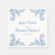 © 2018 Socialite Designs Inc. Beautiful corner swirls and flourishes, hand-painted in soft royal blue watercolor, napkins that complement the matching wedding collection.