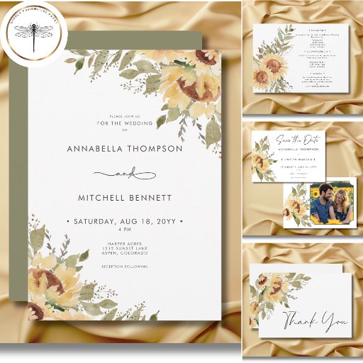 Soft Rustic Large Boho Sunflowers Wedding Dinner RSVP Card