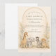 Soft watercolor safari friends gather beneath delicate jungle foliage in this charming neutral baby shower design. A sweet giraffe, elephant, zebra, lion, and tiny companions sit together on a warm parchment background framed by airy greenery and subtle botanical textures. The muted beige, sage, and soft earth tones create a calm, gender-neutral aesthetic that feels both elegant and playful. Perfect for a safari theme, jungle celebration, or modern woodland-inspired gathering.