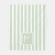 Soft Sage Green and White Ticking Stripe Monogram Fleece Blanket