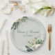 Bring style and elegance to your reception, bridal shower, or rehearsal dinner with this soft sage green floral paper plate. Decorated with delicate ivory blooms, eucalyptus, and muted greenery, it blends classic beauty with modern simplicity. Ideal for outdoor, boho, or rustic weddings, this plate adds a refined touch to any celebration. Designed for both practicality and charm, it’s perfect for creating a coordinated look with matching floral decor and tableware.