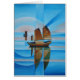 Soft Skies, Cerulean Seas and Cubist Junks is an abstract painting on canvas of an oriental junk: a unique historical vessel. A nautical theme perfect for those who enjoy an oriental sailing vacation, sailors, wanderlust, and a sea less sailed.