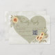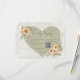 Embrace the free-spirited charm of boho elegance with our enchanting wedding response card with QR code. Featuring a soothing sage green watercolor wash background, the centerpiece is a darker sage green heart adorned with clusters of soft yellow, brown, and sage green sunflowers. The modern script font heading and clean, casual body text offer a contemporary touch, perfectly balancing style and ease. This design beautifully captures the essence of your love story, inviting your guests to celebrate in a setting of natural beauty and relaxed sophistication. Sunflower graphics created by Verya Studios. Created by Simply Farmhouse Press.