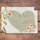 Embrace the free-spirited charm of boho elegance with our enchanting wedding response card with dinner choices. Featuring a soothing sage green watercolor wash background, the centerpiece is a darker sage green heart adorned with clusters of soft yellow, brown, and sage green sunflowers. The modern script font heading and clean, casual body text offer a contemporary touch, perfectly balancing style and ease. This design beautifully captures the essence of your love story, inviting your guests to celebrate in a setting of natural beauty and relaxed sophistication. Sunflower graphics created by Verya Studios. Created by Simply Farmhouse Press.