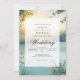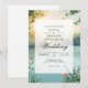 A serene natural backdrop evokes a tranquil, romantic mood. The gentle light and lush greenery create an atmosphere of peaceful celebration. This design feels airy and hopeful.