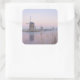 Photo sticker with a fairy tale landscape with old windmills in the soft pastel light of a winter sunrise with ice on the river and frost on the reeds on a cold morning in Kinderdyke, the Netherlands.