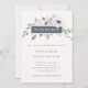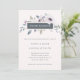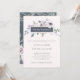 These lovely floral post-wedding brunch invitations feature trendy blush pink and soft violet purple watercolor flowers, with faux gold leaves and accents. The header of the invitation features a dark, grey blue centre frame that says "we're married", and the back of the invitation is also grey with a matching floral design.