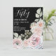 Delicate watercolor flowers in pale pink on a Bold Black Birthday Invitation. Anniversary invitation with Watercolor roses in pale pink and peach on black background and white text.