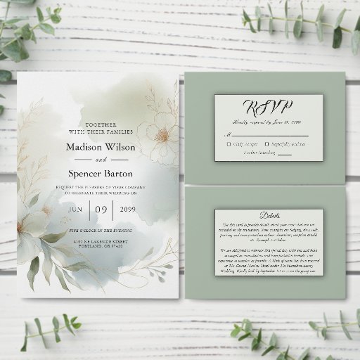 Soft Watercolor Floral Sage Green Wedding SuiteDesigned by Lacey Moyer
