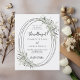 A soft white coloured background. Decorated with greenery and an oval frame. Personalise and add your names and details.