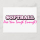 Cute softball t-shirts and gifts that have the saying SOFTBALL- Are You Tough Enough? Girls who love playing softball will these customizeable softball products.