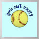 Pitchers, catchers, shortstops and ball players of all ages will love this softball design. Who says girls can't play softball? Girls Can't WHAT?